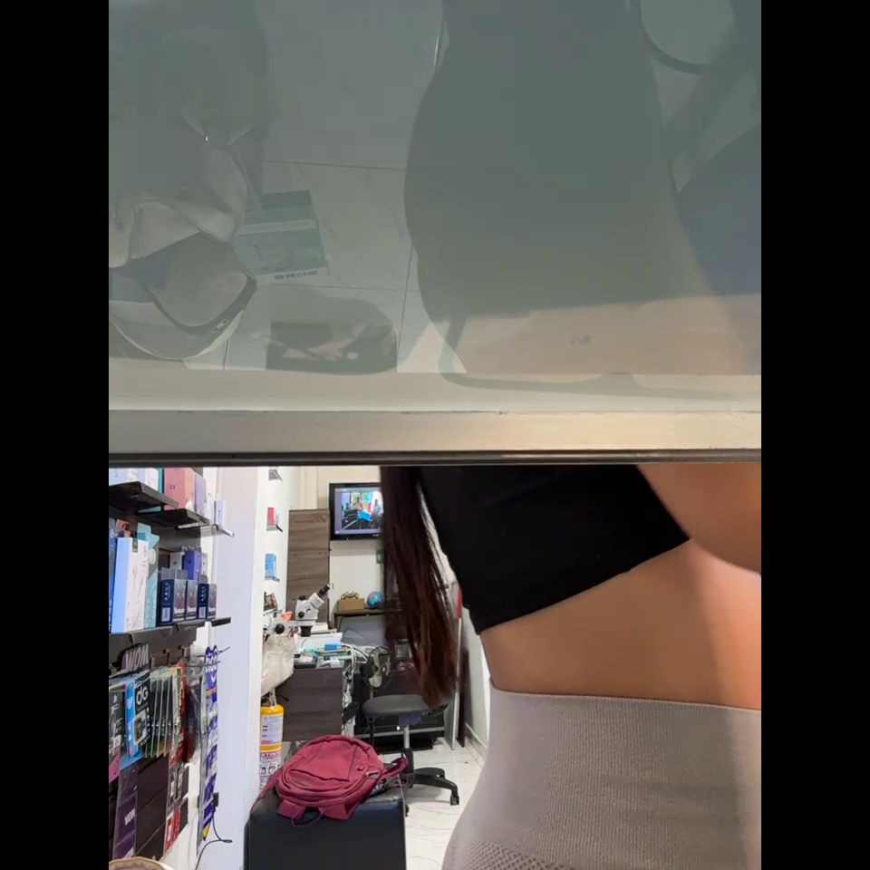 Pregnant girl in a phone shop. Naughty girl Goal - Show open hole ass sexy spank public