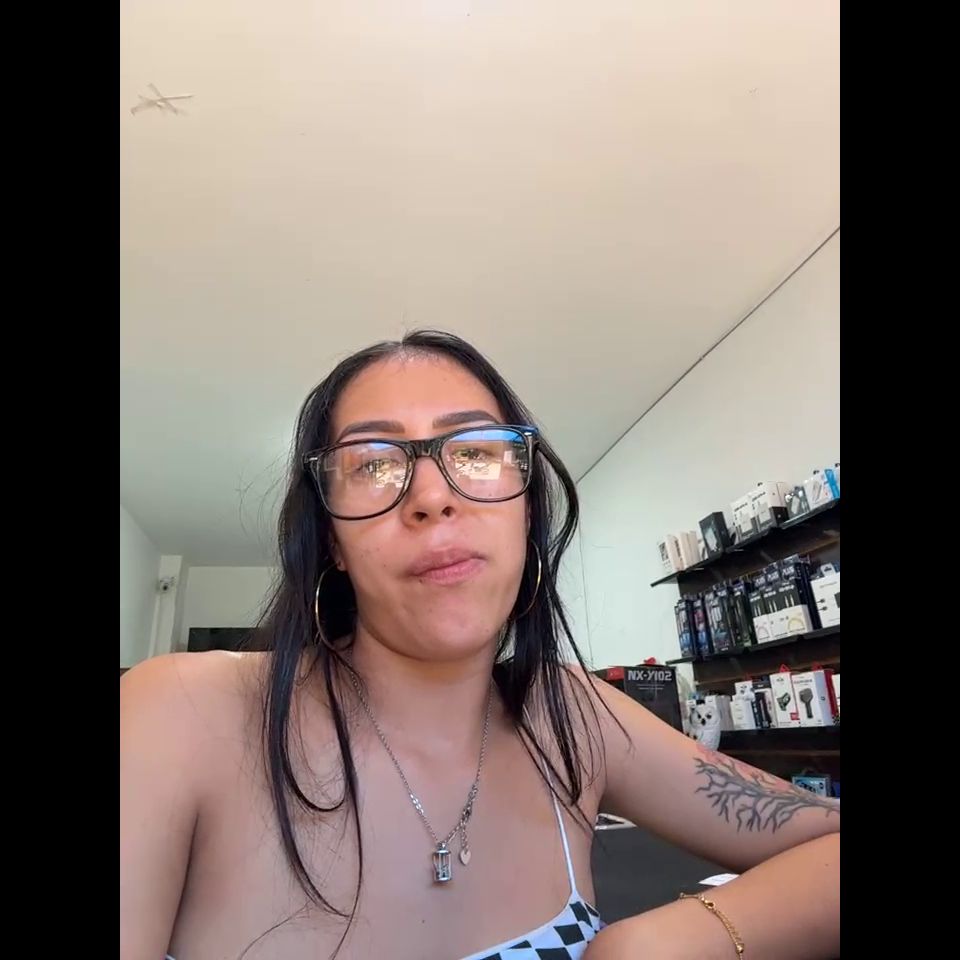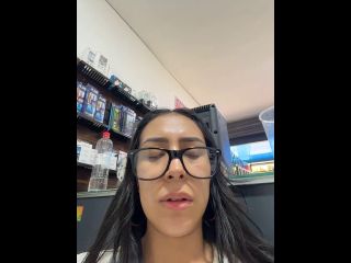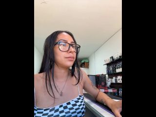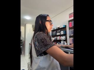 Pregnant girl in a phone shop. Naughty girl Goal - Show delicius my tits and rub public