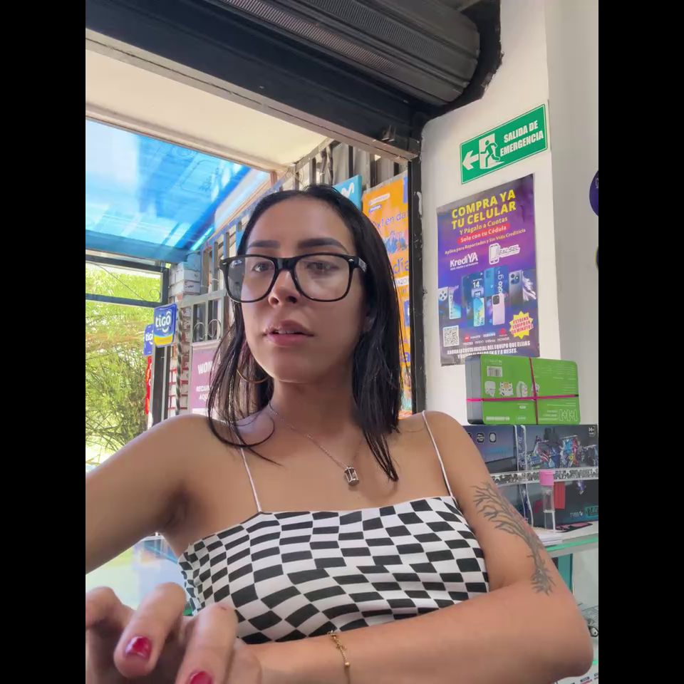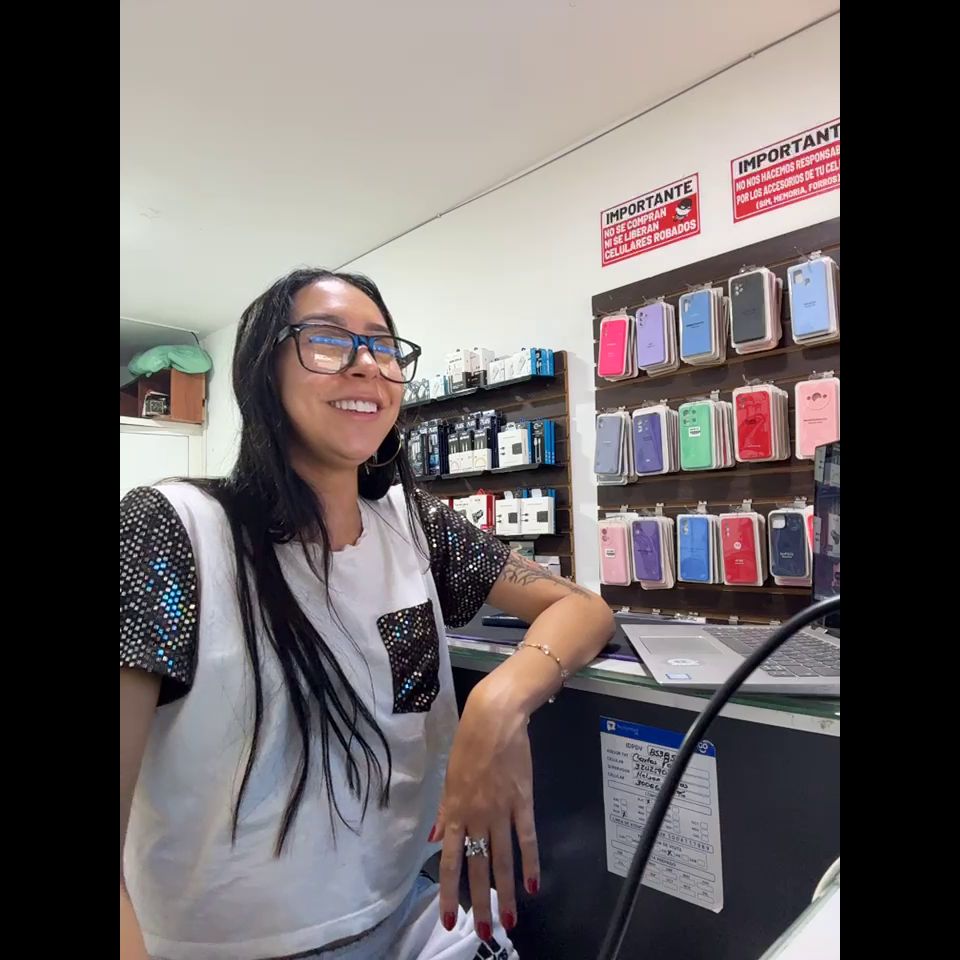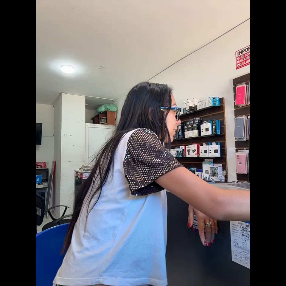 Pregnant girl in a phone shop. Naughty girl