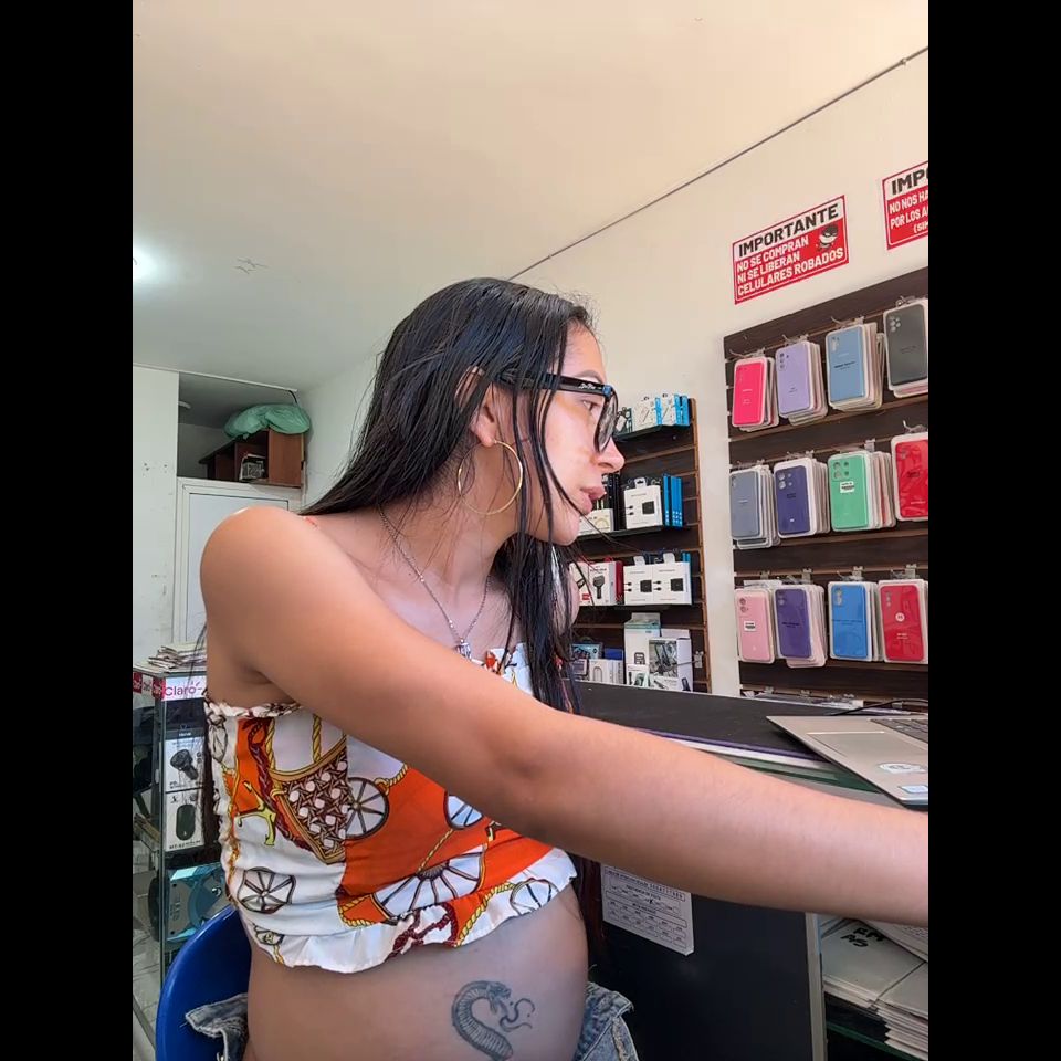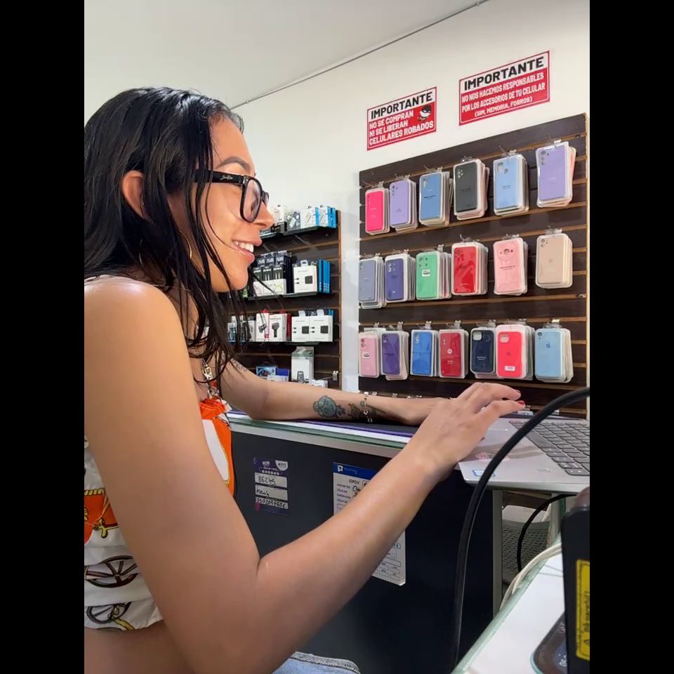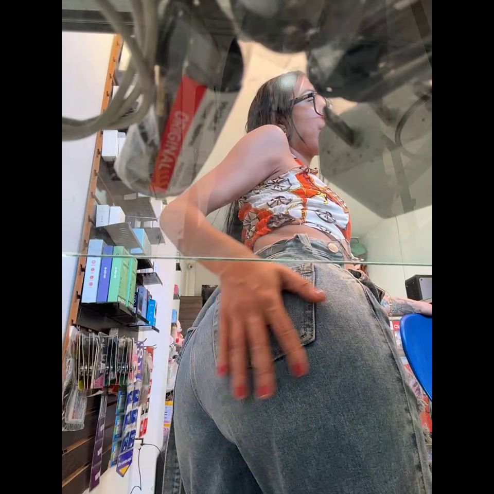 Pregnant girl in a phone shop. Naughty girl Goal - show doggy and sexy off pantie