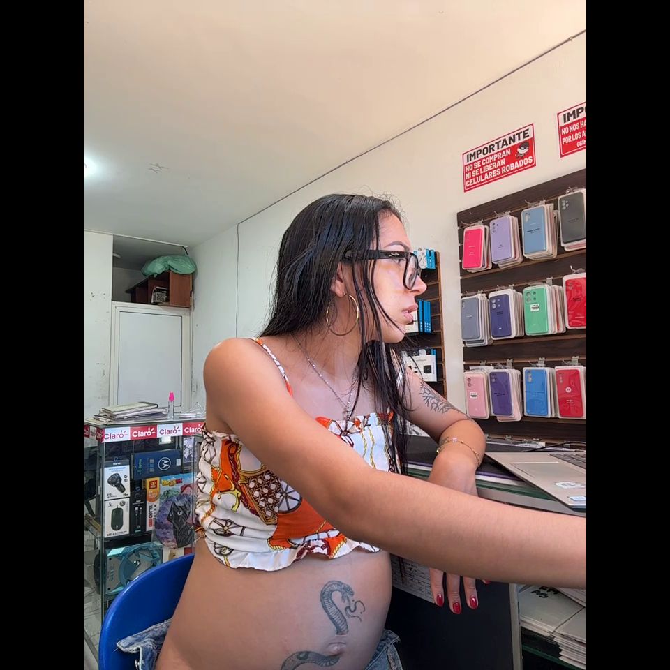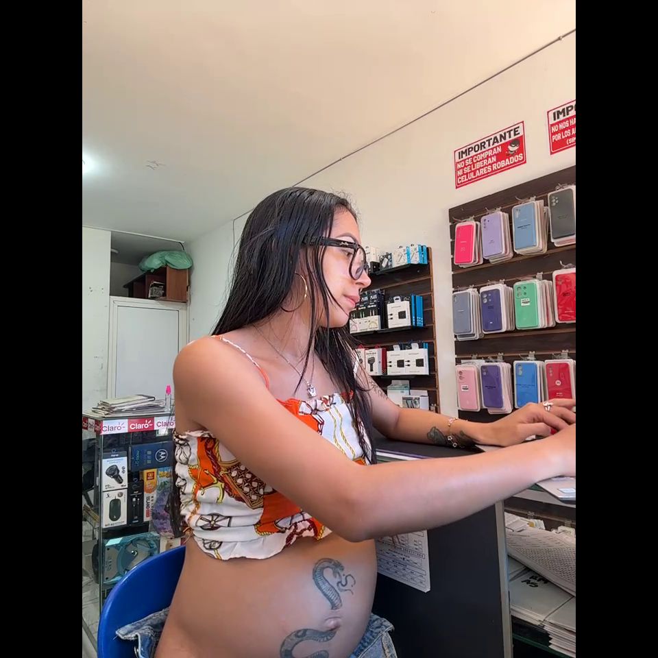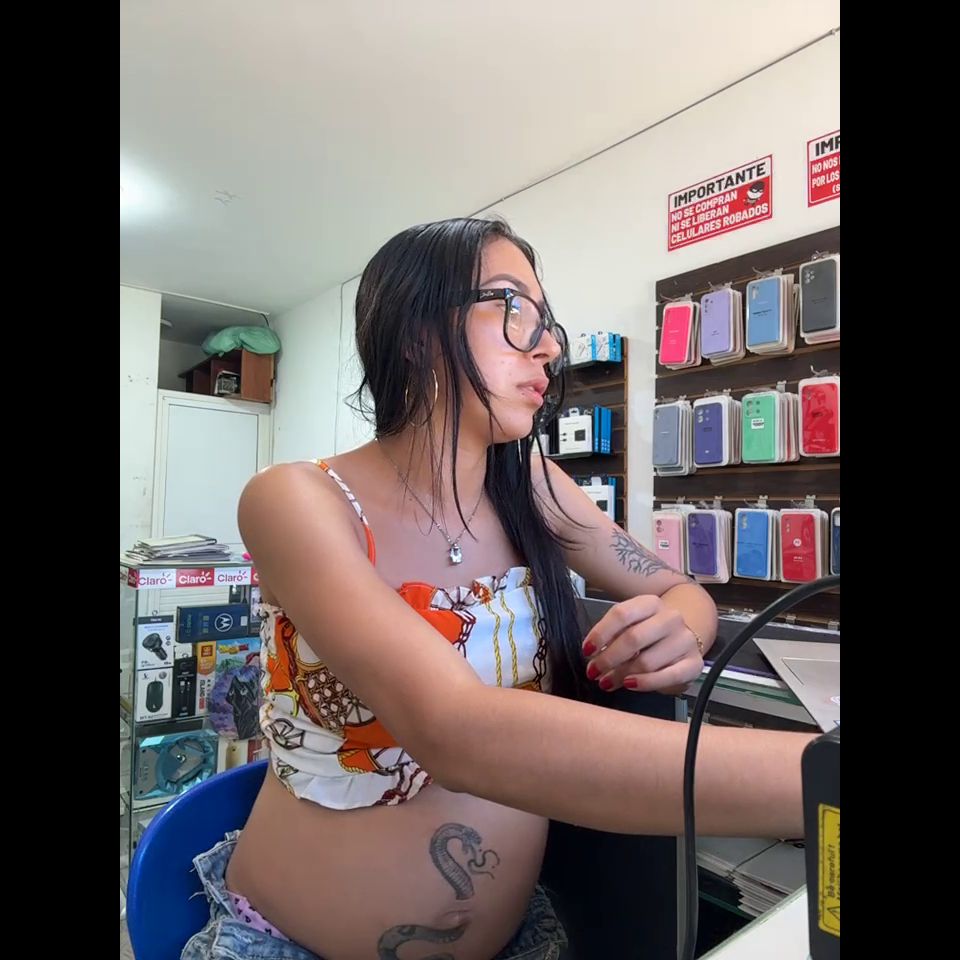 Pregnant girl in a phone shop. Naughty girl Goal - show delicius tis and rucb public
