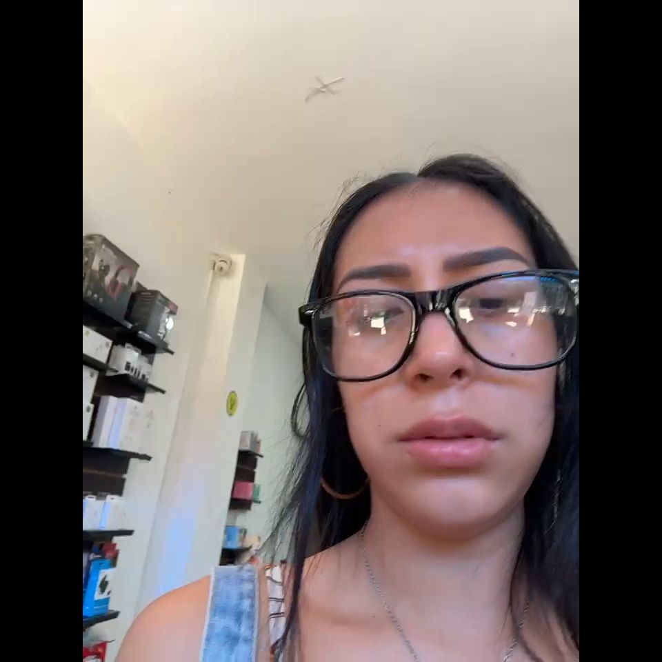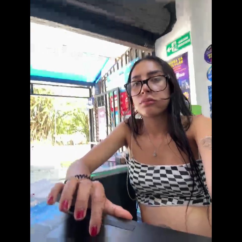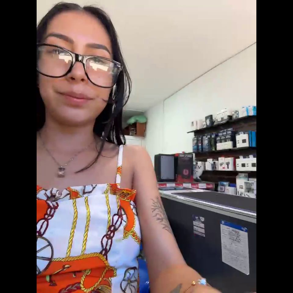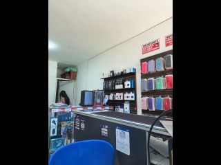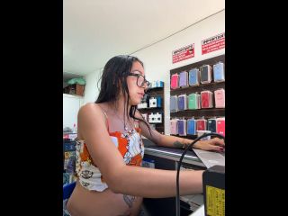 Pregnant girl in a phone shop. Naughty girl Goal - show delicius my tits and nipple rub