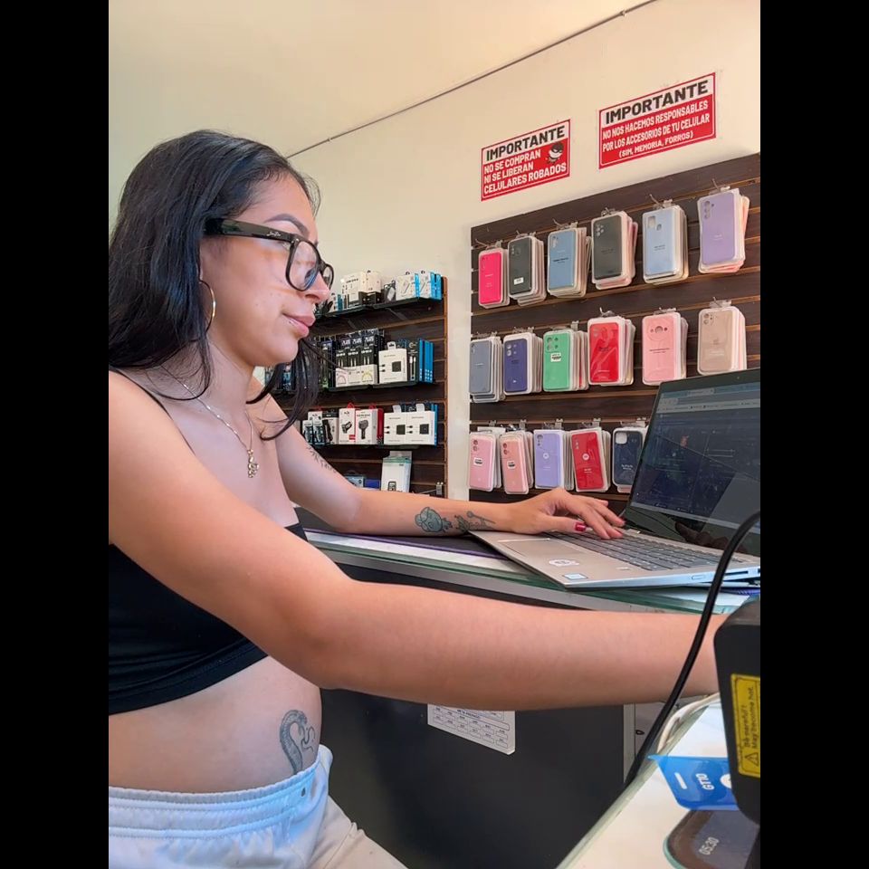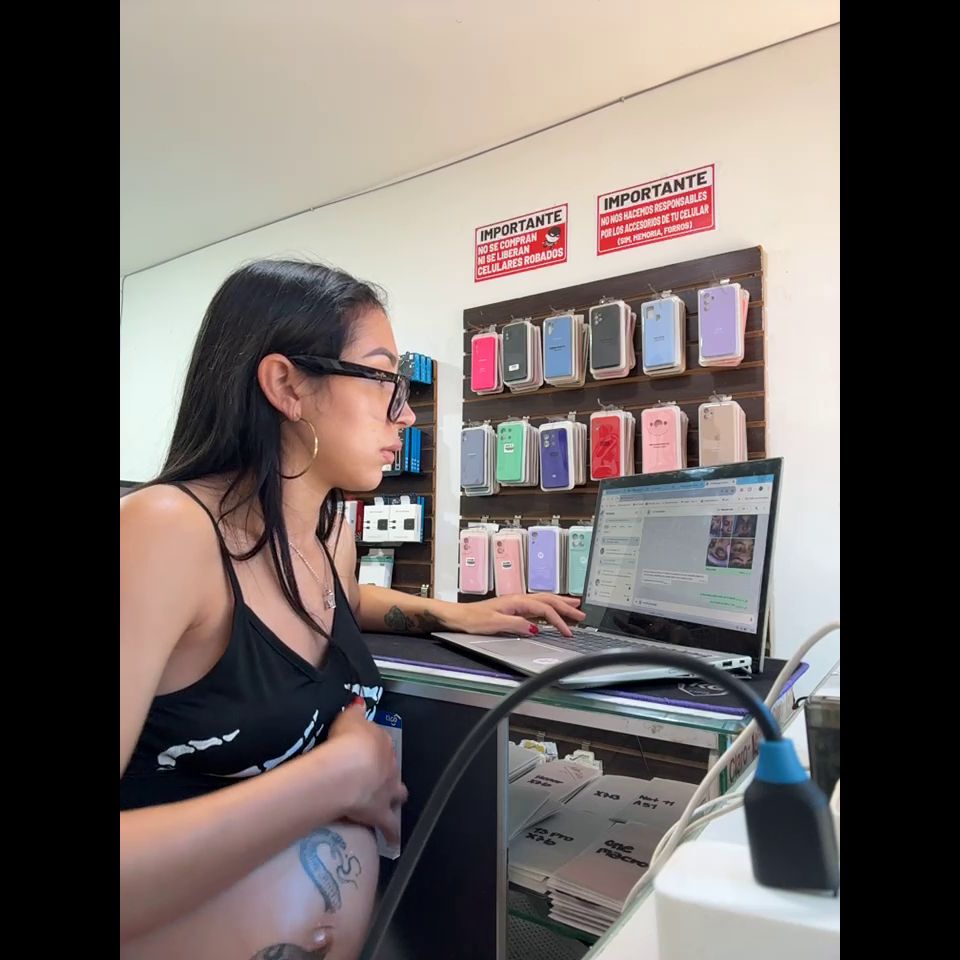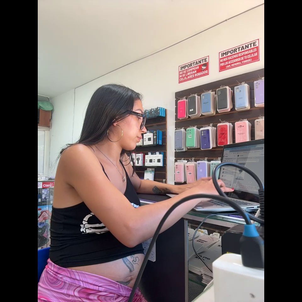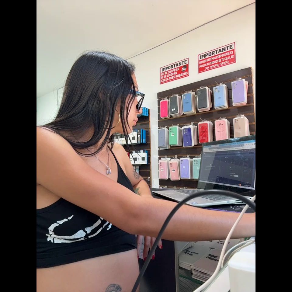 Pregnant girl in a phone shop. Naughty girl Goal - show doggy and off pantie delicius