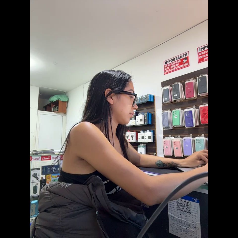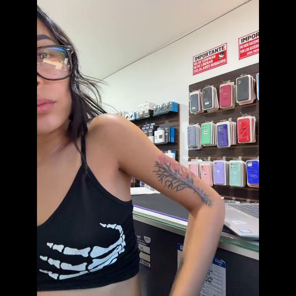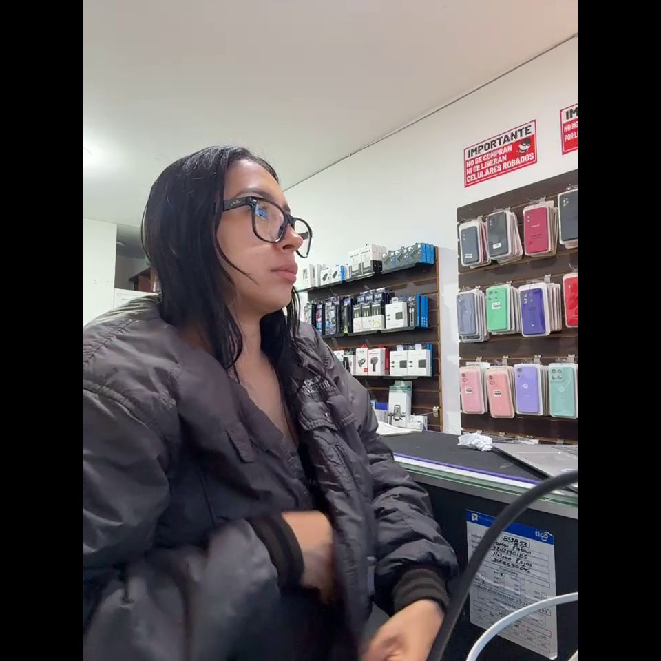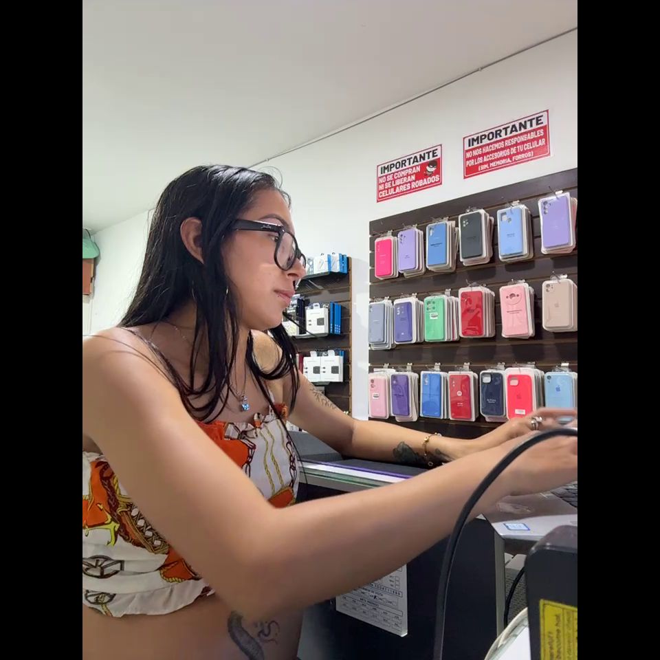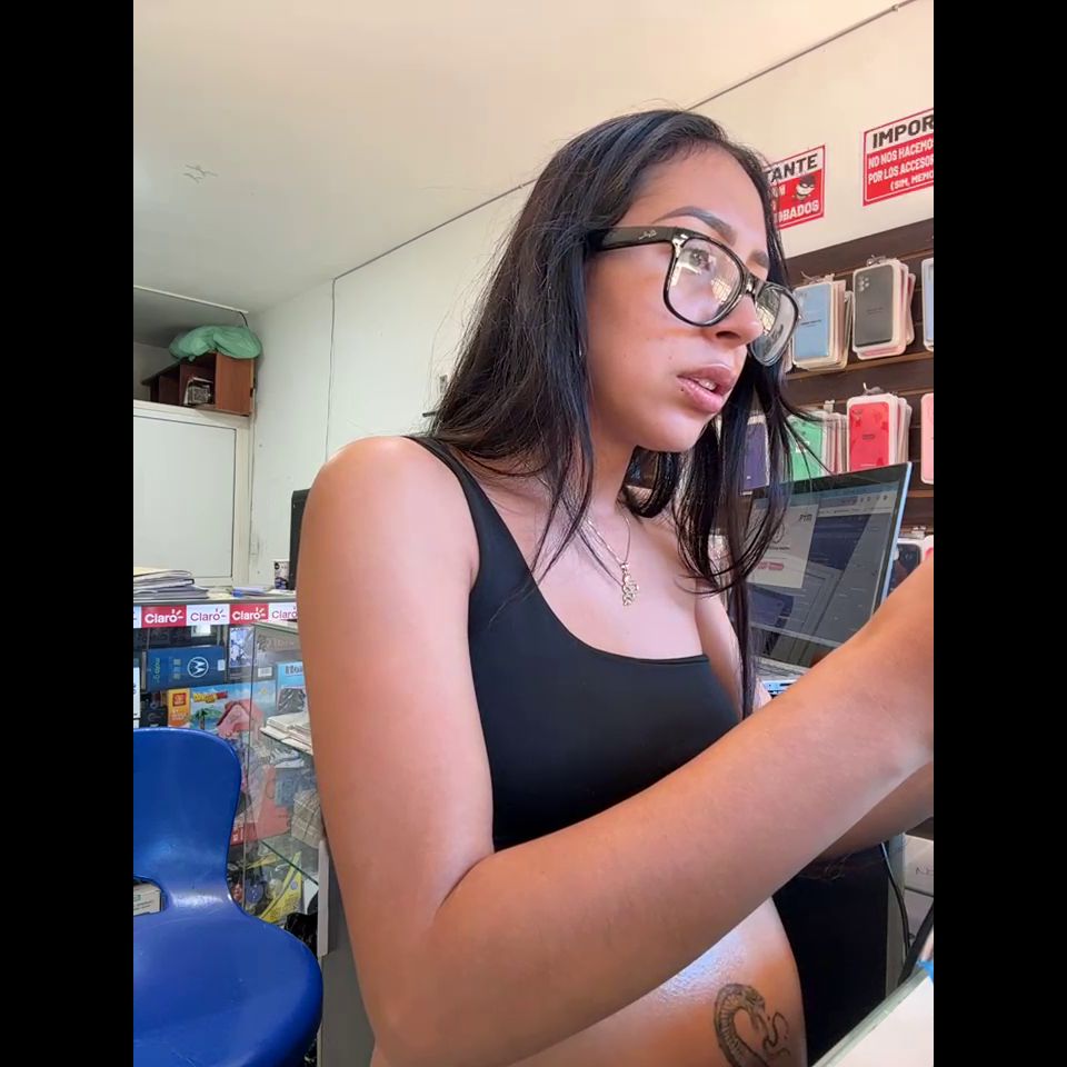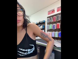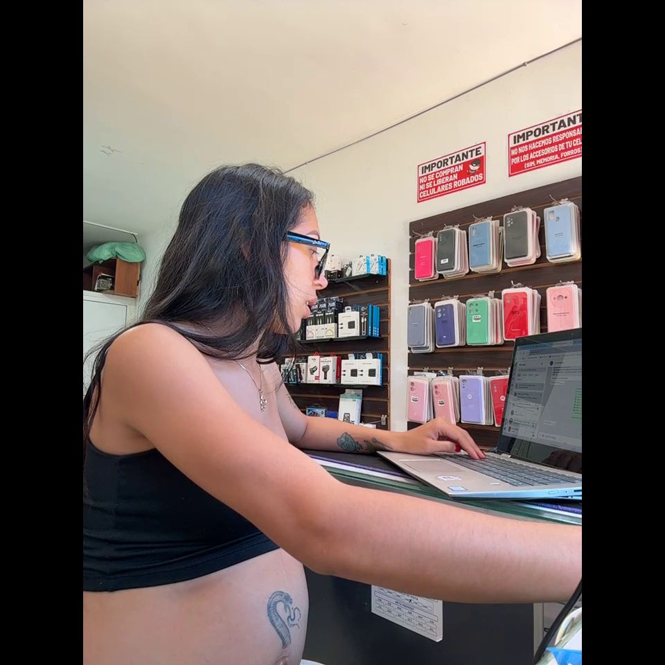 Pregnant girl in a phone shop. Naughty girl Goal - show my delicius tits and rub public
