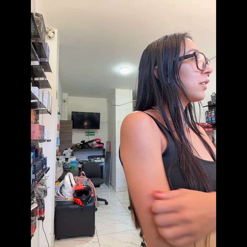 Pregnant girl in a phone shop. Naughty girl Goal - fingers in pussy wet sexy