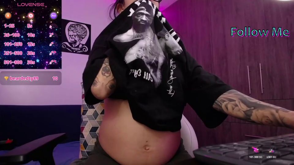 STRIP SHOW WITH CONTROL LUSH 10 MIN 140 tkns #pregnant #bigtits #cum #anal #tattoo Goal - show tits with spit