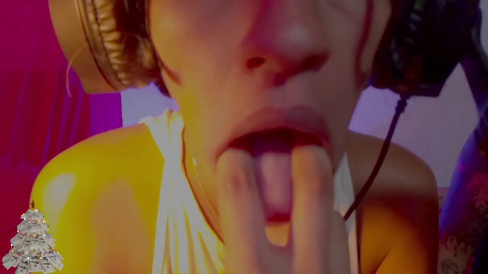 Lick fingers in front of the camera