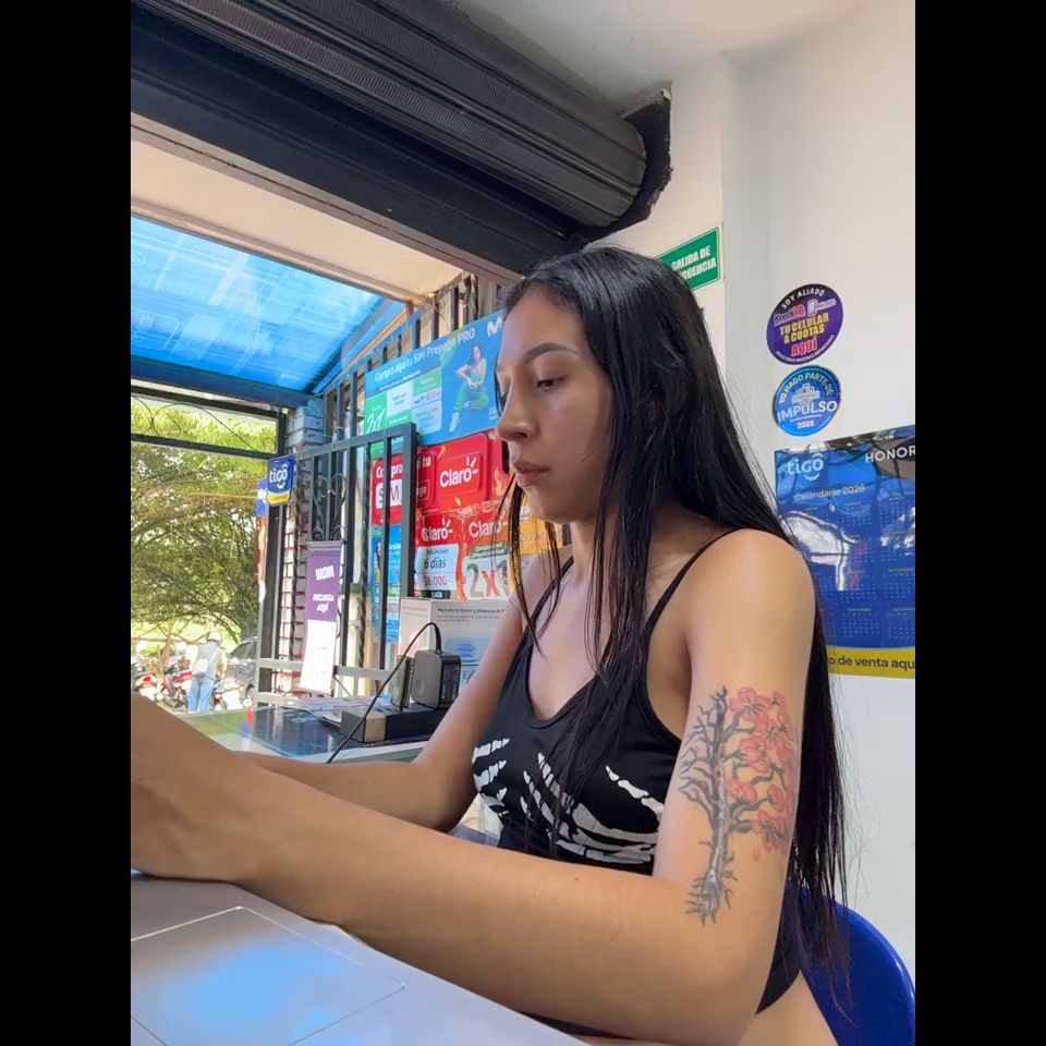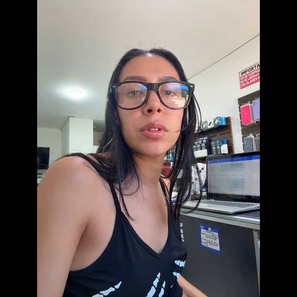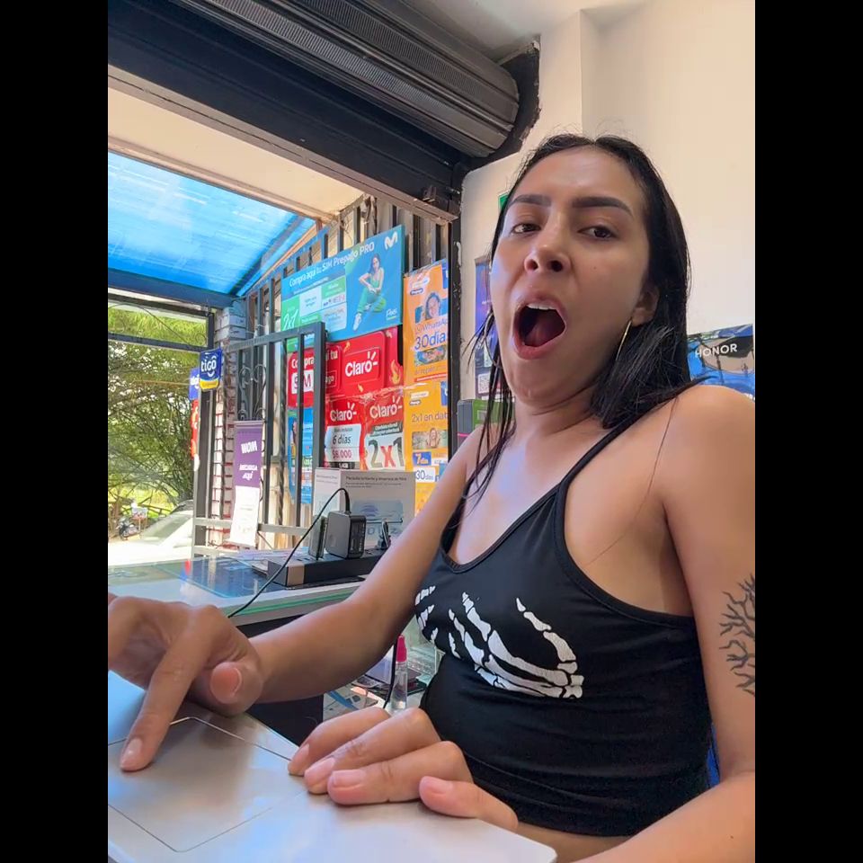 Pregnant girl in a phone shop. Naughty girl Goal - Show open hole ass AND spank hard