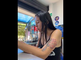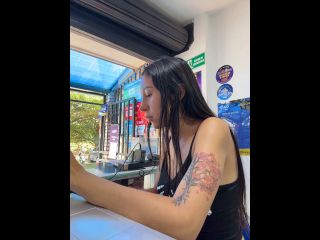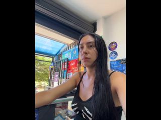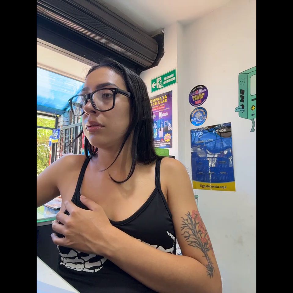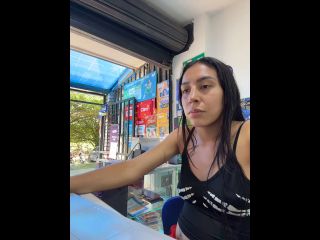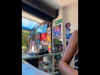 Pregnant girl in a phone shop. Naughty girl Goal - show my delicius tits and rub in públic