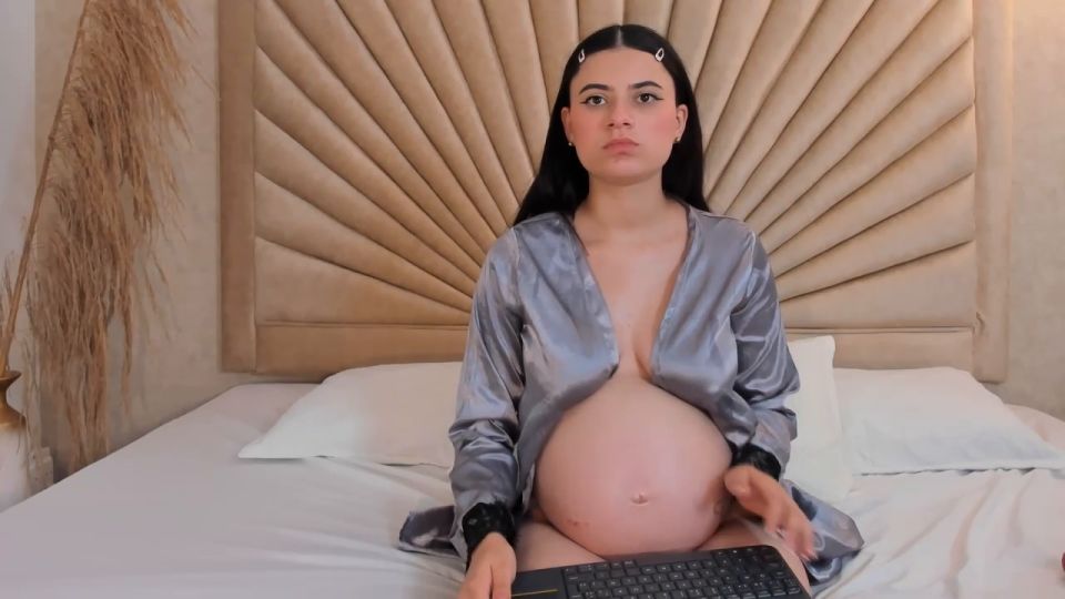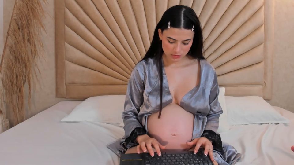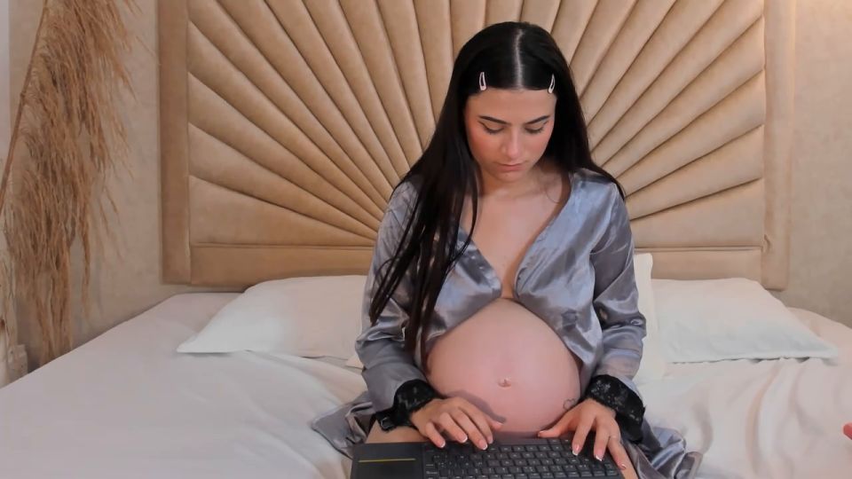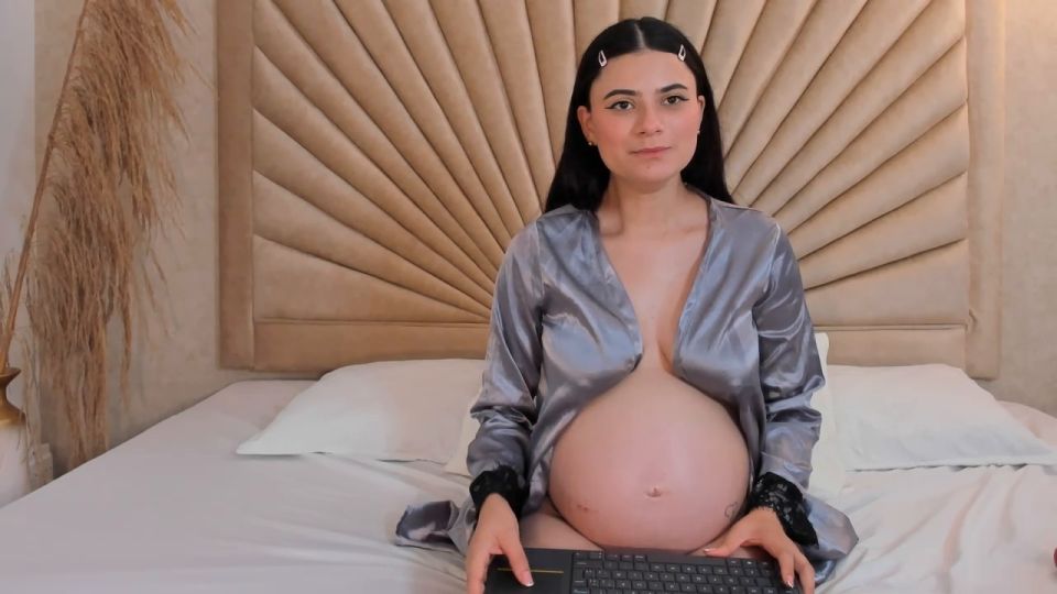 Caress my round belly and see how my tits drip milk for you...